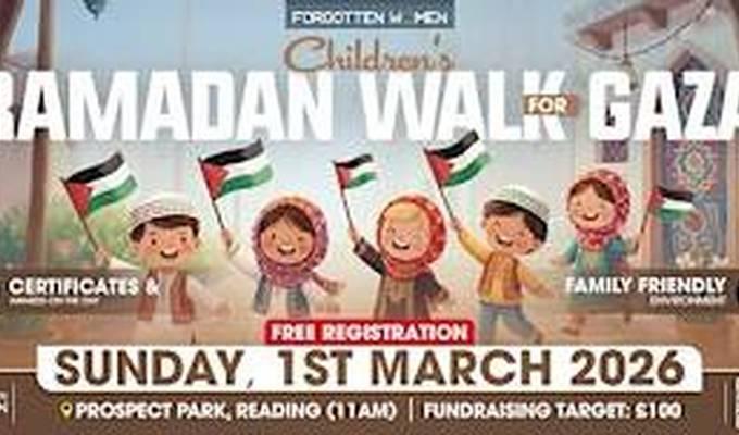 A family-friendly Ramadan walk where children and families come together to stand in solidarity with the children and women of Gaza. Join us for a powerful Ramadan Walk for the Children of Gaza in...